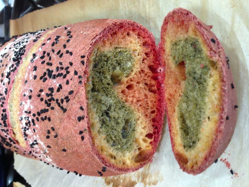 It's funny, only the loaf where I put the beet layer on the outside stayed that pretty red color. The other loaves when cut open, the inside beet layer turned more orange. So at least I know now to keep beet as outside layer. Thank you for compliment!