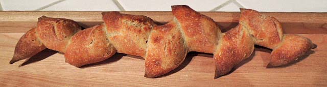 I wanted to make some baguettes today. I had some excess active firm starter. I usually make sourdough baguettes with a liquid starter, and my best sourdough baguettes take two to three days to make, but why not try a formula for one day baguettes with firm starter?