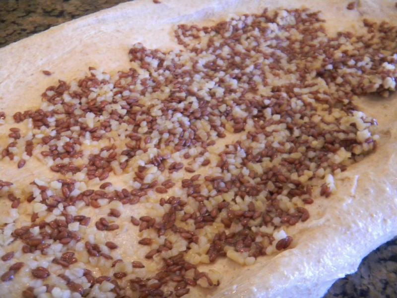 scald. I had bought some golden flax seeds I wanted to use and put them in with the bulgar and water, brought it to a boil, then turned it down to a simmer for 3 minutes and made a Janet gruel out of it. Then off the heat and cover with plastic wrap until it cools. This one was going to soak overnight so I put it in the fridge when it cooled. When I got it out in the morning with the old dough and levain to warm up I took a whiff of it and it smelled really strange in and odd and sickening sort of way.
