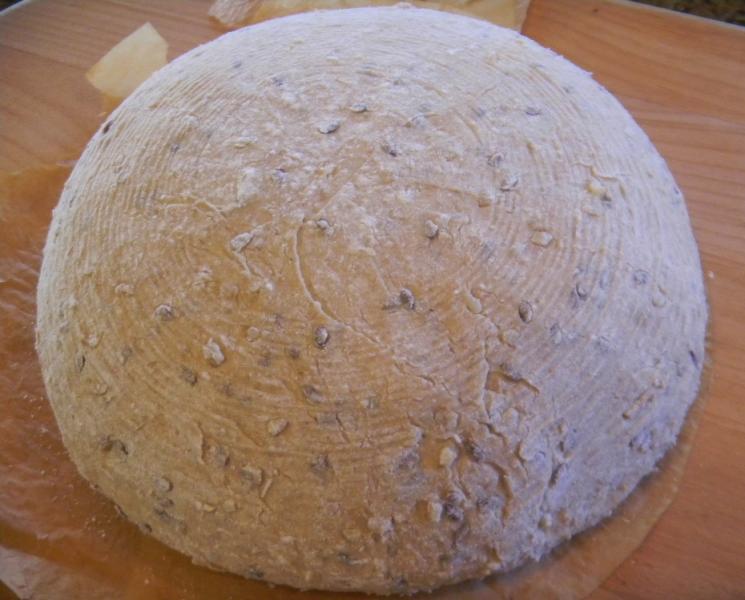 After the 10 minutes of French Slap and folds and the 15 minutes rest, the (3) sets of French slap and folds were done between 15 minute rest increments. The Janet inspired bulgar and flax seed scalded mash was incorporated on the 2nd fold and fully distributed by the 3rd fold.
