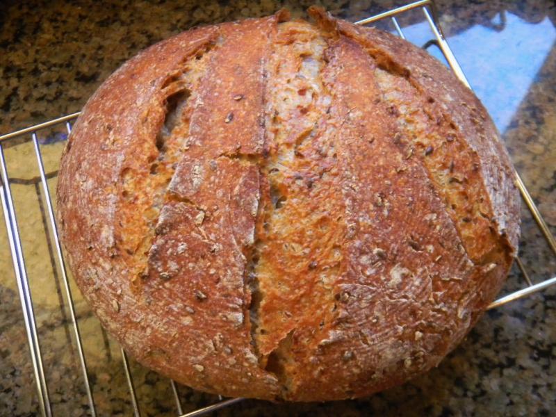 Just pulled my lastest multigrain with soaker bread out of the oven about an hour ago. I think you will like this one. It's right up your alley and came out as dark brown as any loaf I've baked. Have to wait a little longer to cut into it and work on a post.