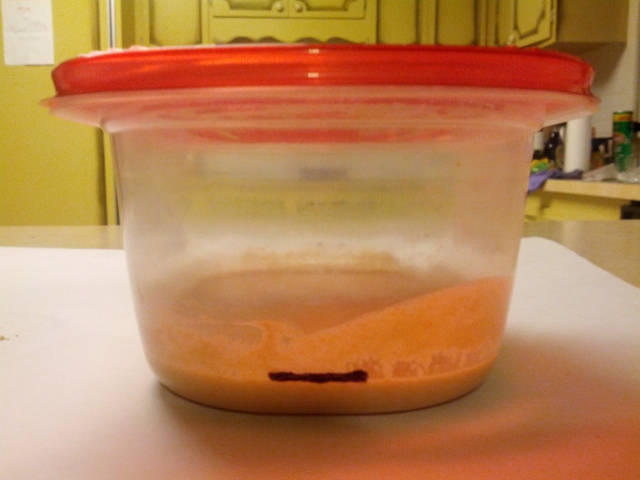Very Soupy. Not much to it. Drew a line on the container to keep track