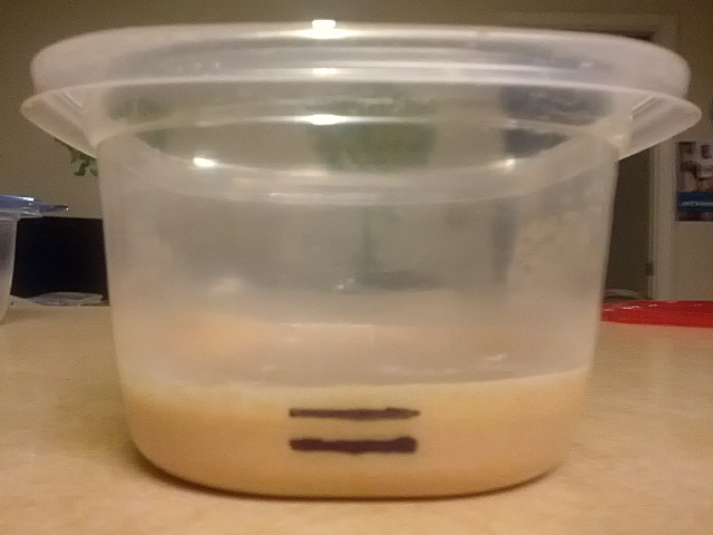 Back trouble caused me to turn in early and miss 12 AM deadline. But change seems minimal in both ferments. To make it easier on myself, I'll be referring to the cultures by the color of the container lids: Red for Reinhart, Blue for Ortiz.