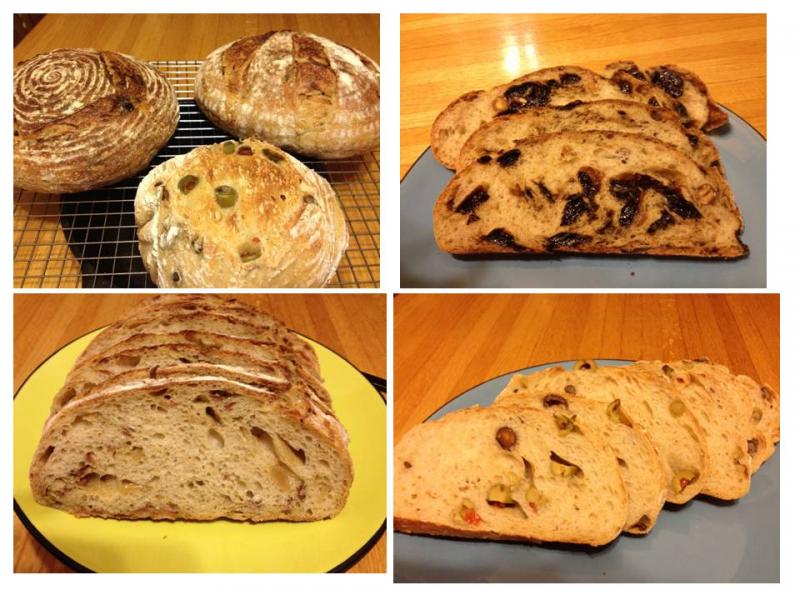 5. Second round of Tartine breads: one with with prunes and roasted hazelnuts, another one with caramelized onions and bacon pieces, and the third with olives. They were all really good.