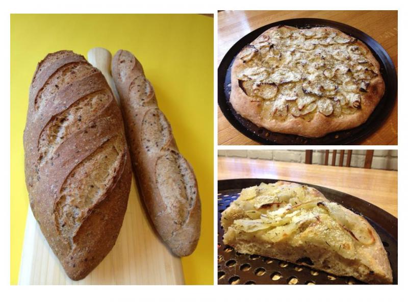 6. Hamelman’s Whole-wheat multi-grain in two shapes and the Potato Focaccia from the Tartine book.