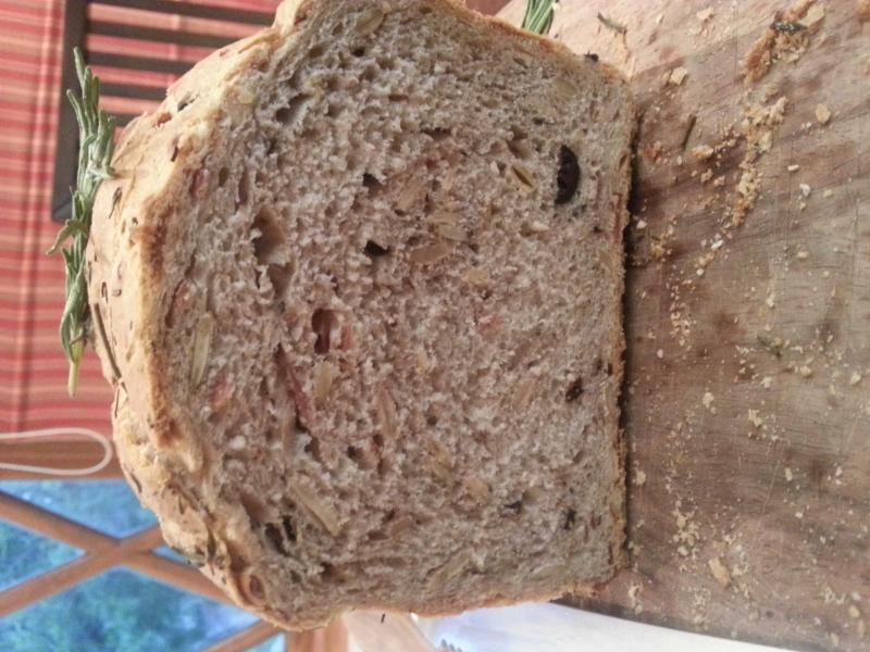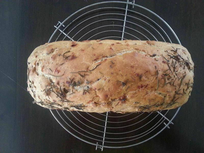 Shape into a batard /oval shape, roll through some dried rosemary leaves and place in a well-oiled pullman pan (2 liter). Brush on a slight coat of olive oil. Preheat oven to 210 centigrade.