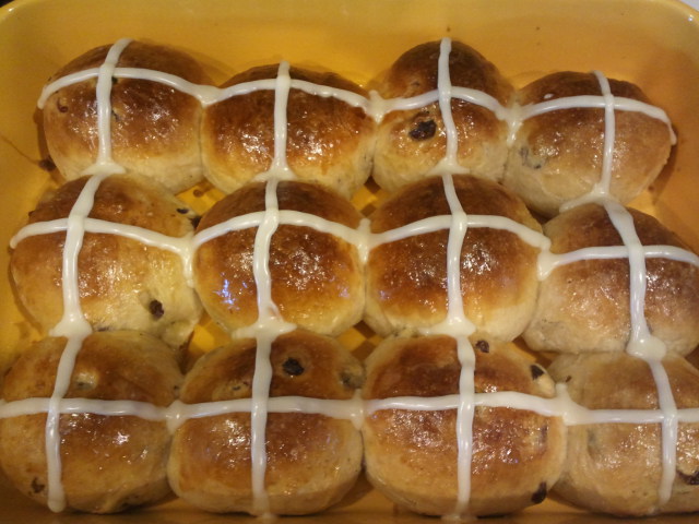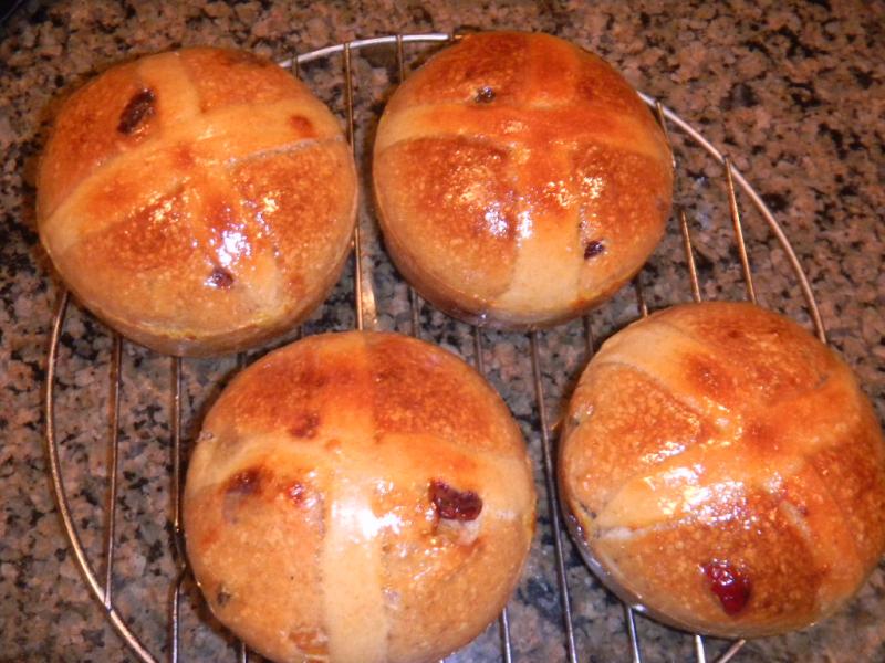 Those are crazy amazingly great looking hot cross buns... they are so uniform... did you bake them in English Muffin rings? Nice and shiny and DElish looking... we may have to adopt you as a grandson! Great baking DAB.