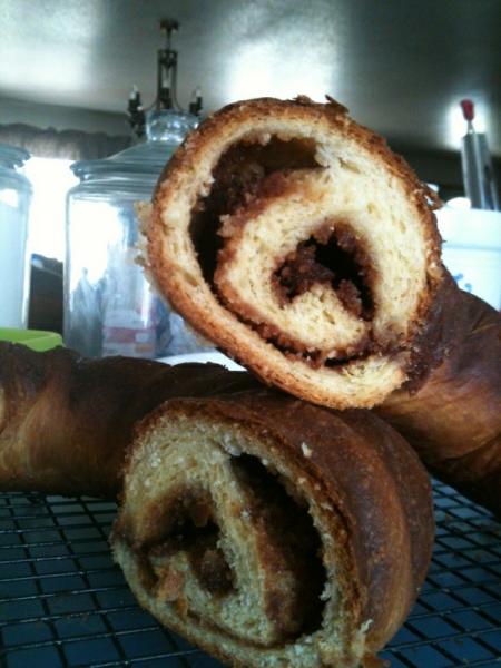 This is a crumb shot of her loaf babka... and then she made the one in a bundt pan below...