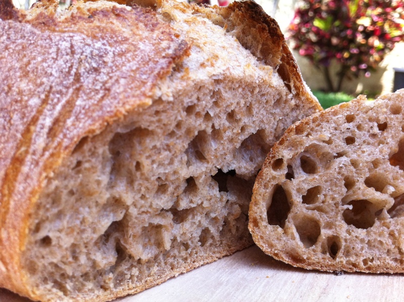 Here are pictures of the latest bread I've made, a long fermentation wholewheat-rye sourdough.