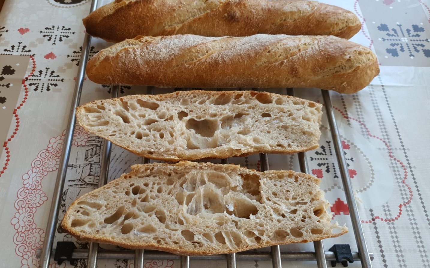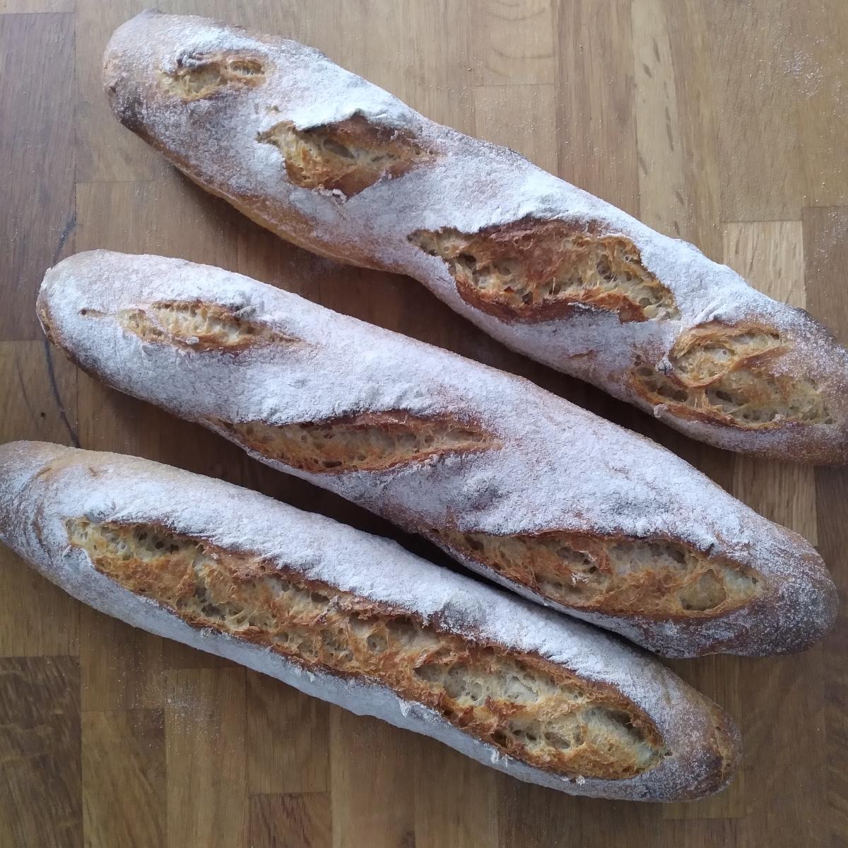 Superbes baguettes, recette adoptée, pas d'acidité exacerbée, belle mie et croûte bien craquante, un régal