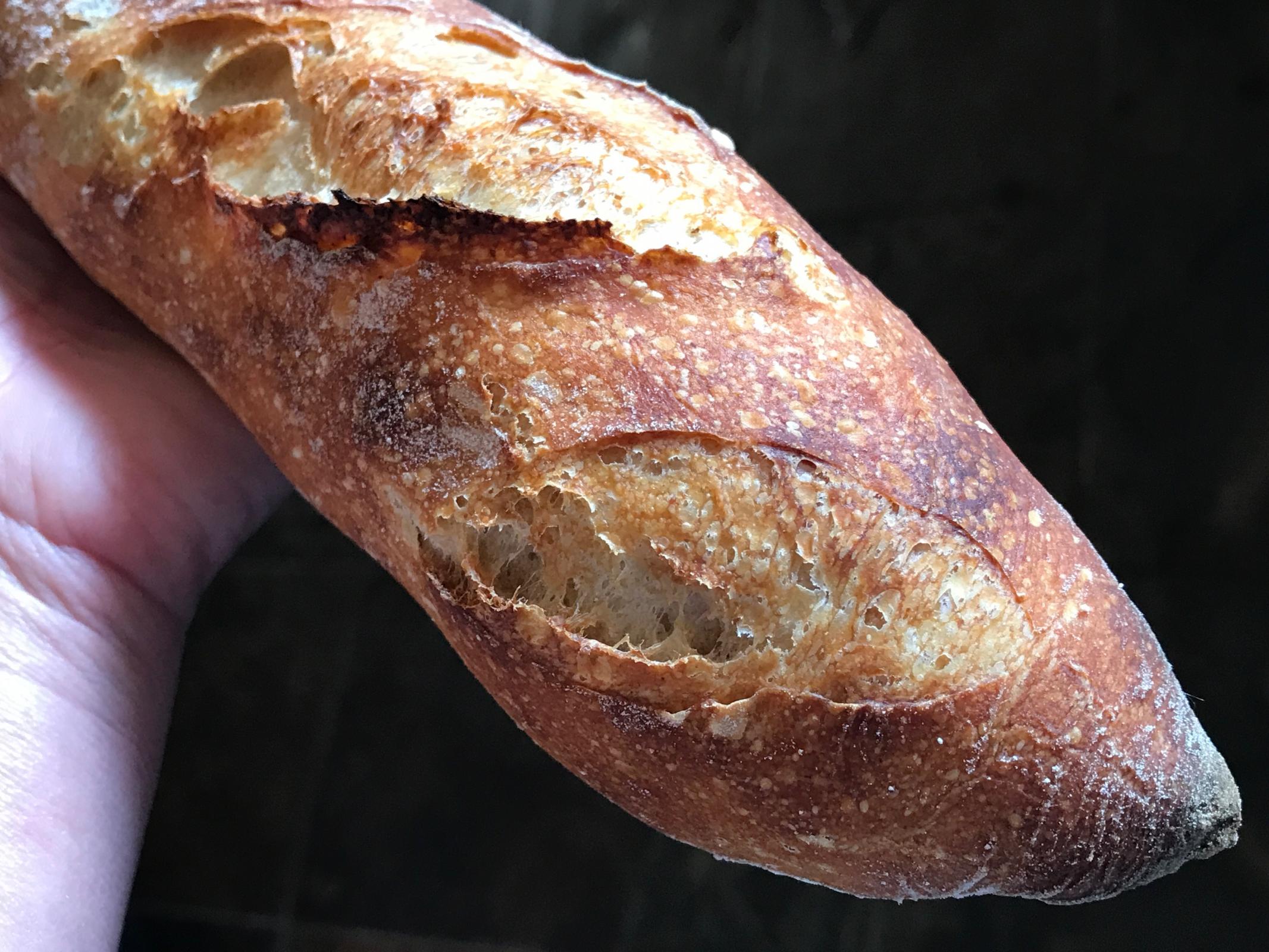 Definitely one of the betterbaguettes I've had, and as a bread historian as well as a mediocre baker, that says a lot about the quality of the recipe.