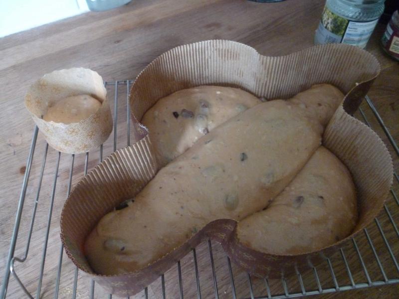 My last attempt at forming a colomba hadn't been a success, so taking inspiration from thefreshloaf, I decided to fold and stretch it repeatedly until I had a nice tight ball. I let this rest for an hour and then repeated the process, before putting it into the shape. I was much happier with the shaping this time, the dough had a better, tighter skin on it.