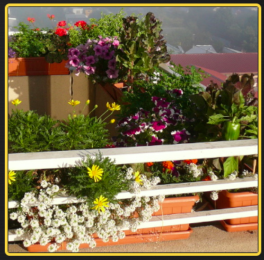 three kinds of lettuce, parsely, chives, basil, edible geraniums, a little avocato tree, radishes, and a sprinkling of flowers to make everyone happy. The salads are going to seed now, I cut some of them down but the romaine behind the bell peppers are just beginning to bloom yellow so I left them.  The pot has green romaine and the endive is just behind some of the parsely.  The market is plum full of vegetables!  There is a little old lady two doors down on the street that sells onions, cucumbers, tomatoes, avocatoes, bananas, apples and lemons and and and out of her little store.  Easy to find what I need.