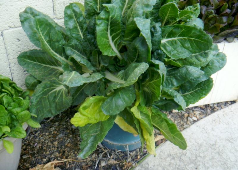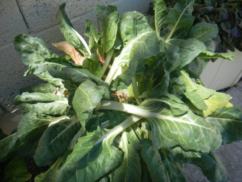 yours we would be drowning in veggies.  You must have a large family.  I started the Swiss chard in February 2011 and it has been in the same pot since then.  It has never flowered or gone to seed.  In teh summer I move the pot to the shade adn in the winter, if it is going to freeze I move it inside. We strip off the outer largest leaves to eat and it just keeps on going.  Never had a veggie go that before either.  With 5 plants in the pot I give it a little Miracle Grow with every watteringh now that we are getting hotter is twice a day.  It wilts up and collapes with the lettuce by 11 AM but it itin the shade with them in the afternoon and when i water them at that time and at 3 PM they are all perky again.  I take a picture today to show you the collapse.