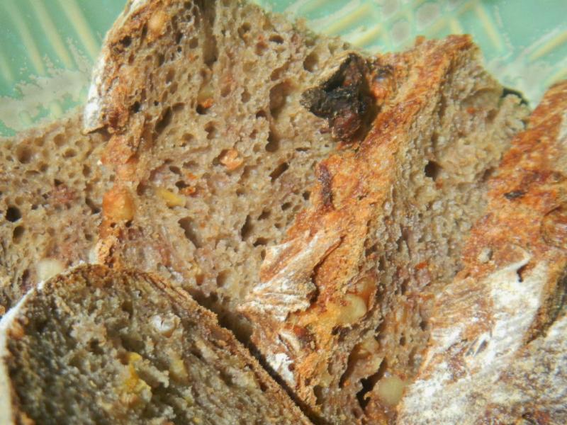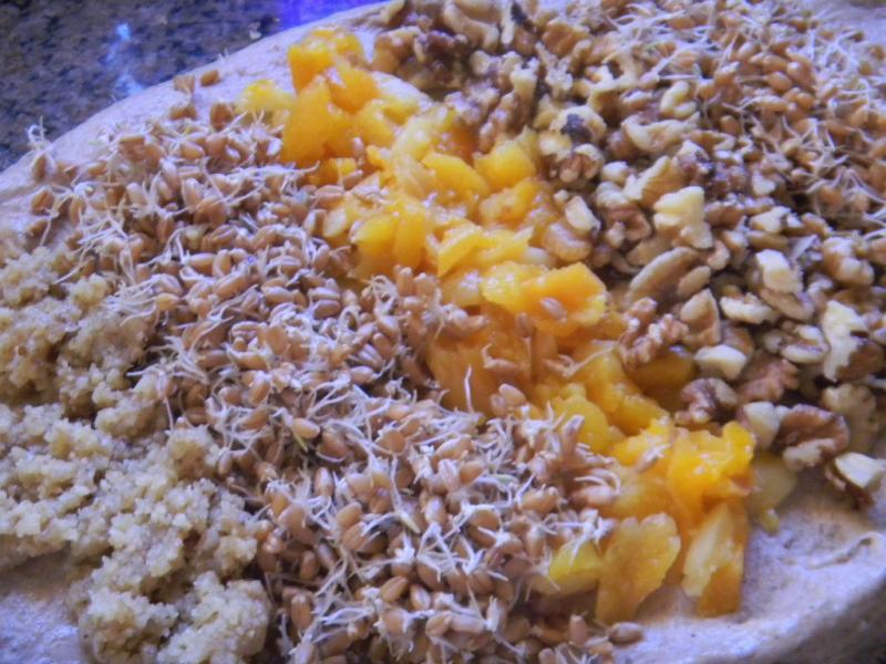in our bread. Sprouts just take a lot longer. Some folks don't like these chewy bits but I just look at it as part of a healthy whole grain bread. The walnut oil paste with the walnuts add nice color and flavor too. The fig juice added a slight undertone of sweetness too. Will make some French toast this morning and see how it fares that way.
