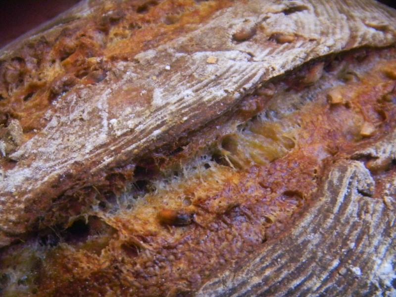 The crumb had that purple tinge we like so much. It was fairly open, moist and soft. The taste is unique, earthy and hearty. Everything works well together from a flavor perspective too. It is fun bread to make and well worth the effort. We will be making this again. Thanks to Phil and sweetbird for the fond memories of their great bread.