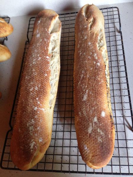 I'm hoping the experts here will give me a few ideas of what to try to prevent splitting at the bottom of my baguettes. I've included a few photos.