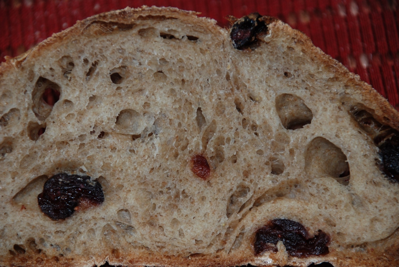 Hey DA,   I wish I could give you a fuller report, but this bread disappeared so quickly I'm not sure.   No really - I should have said.   The substrate (ie the bread) is really great.   Just a bit of spelt will do that, I'm not sure why.   I've tried this a number of ways in developing my formula for seeded levain, but going with the rye sour as the principal leavening agent seems to be the right thing.   I only put in a bit of starter because I always have a bit extra around, and I'm sure it adds that special something.   I wouldn't necessarily have thought that throwing cranberries into a lean dough would be just the thing, but it is.   The tart flavor just comes out so nicely against the grains.