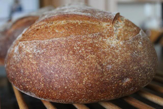 Although not readily visible in this shot, there was a small amount of tearing at one slash on each loaf, suggesting that I could have allowed even further fermentation.