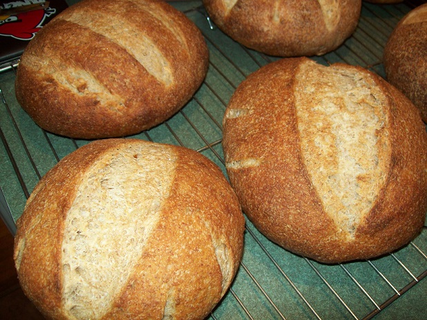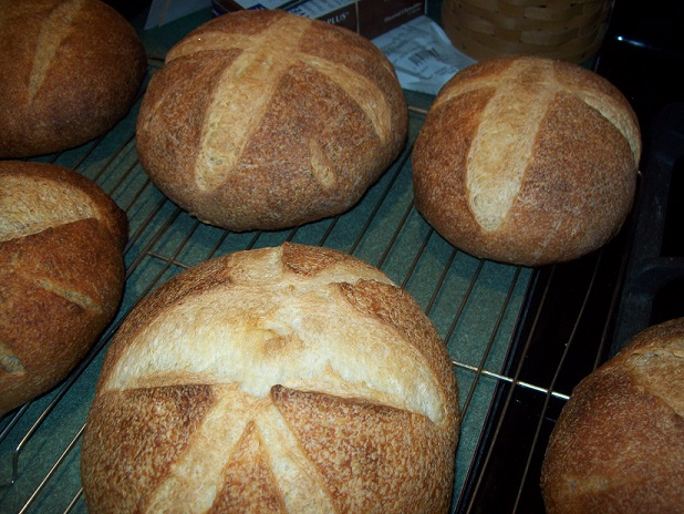 The finished loaves. The three you can see in this picture are the semolina loaves, which I think turned out the best.