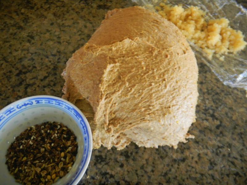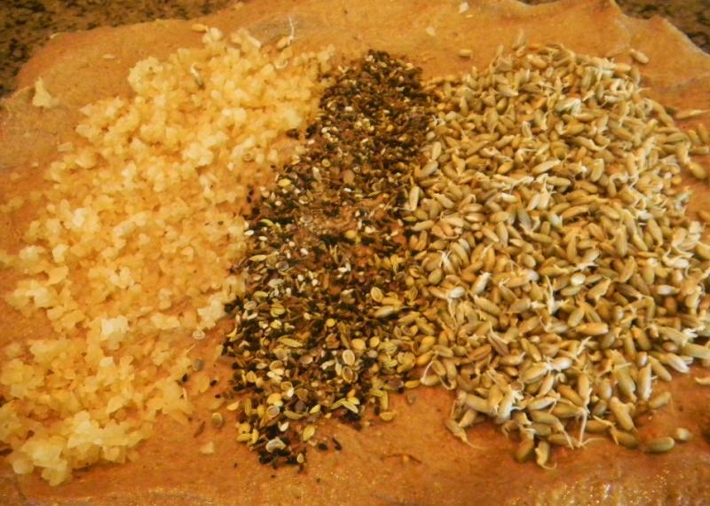 Lucy put the usual red and white malts and little VWG to boost the white unbleached AP and bread flour’s gluten content since these are bin flours from Winco and not much over 10% protein. The aromatic seeds are the usual caraway, fennel, anise and fennel with the emphasis on caraway. This time she used 100 dry grams of wheat berries that she soaked for 3 hours before sprouting them for an additional 25 hours until they chitted.