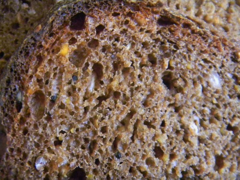 porter before and the taste, like most beers in bread, disappears but the color remains. With this bread doubling in volume in the fridge and then rising even more as it warmed up in the morning we expect the crumb to be fairly open even without any YW in the mix to open the crumb on heavy breads.