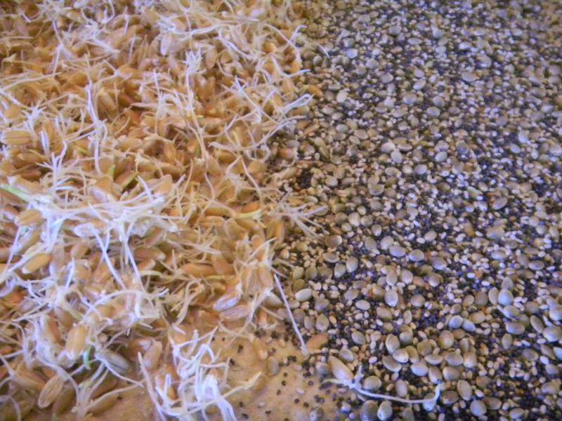 The dry included toadies, WW, Spelt, oats, corn, red and white malts, a small; amount of VWG, and some medium ground white and black sesame seeds with some golden and brown flax seeds.