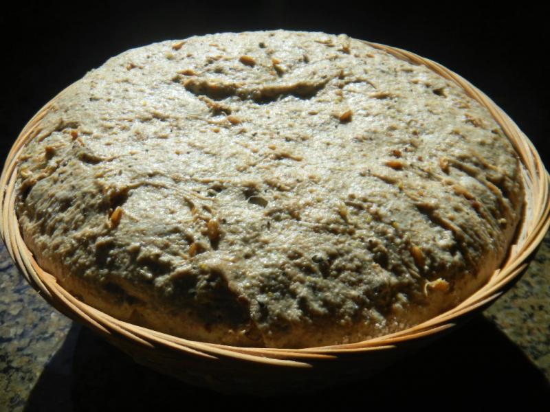 Once the autolyse was mixed with the small amount of levain, we did 10 minutes of slap and folds where the gluten developed very well. We then did 3 sets of S&F’s where the remaining hemp, black, white and brown poppy seeds and the WW sprouts were incorporated on the first stretch and fold.
