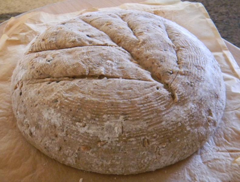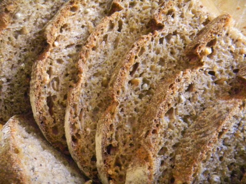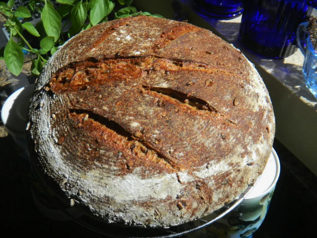 Lucy seems to be back in action with her exotic creations. What is not to like about this bread with sprouts, seeds and flours from every section of grocery store!