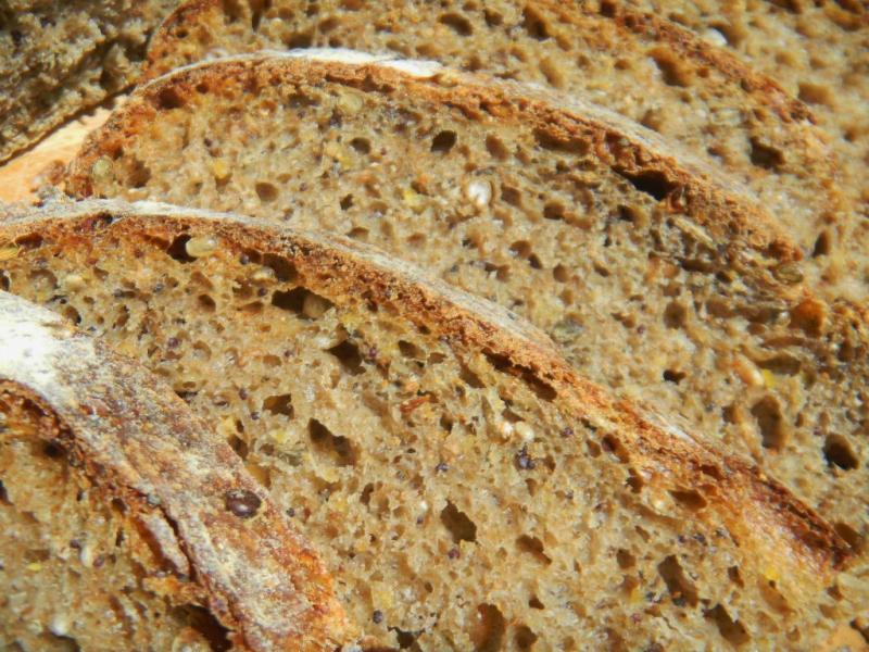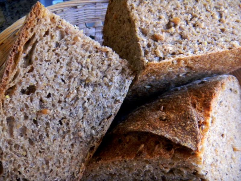 The ground flax and sesame seeds really give a nutty wholesome taste to this bread and compliment the sprout chew. The hemp and poppy crunch, if a little dopey, is a surprising twist too. This bread grows on you and it was more sour the next day too. Even my wife has been taking it for lunch. She wonders why Orowweat's 100% Whole Wheat tastes and looks like it is missing some of the 'whole' compared to this bread that seems,feels, and tastes so much more full of 'whole' but is only 60% whole grains? I think it has something to do with improper; labeling, inferior ingredients, poor methods and evil machines :-)
