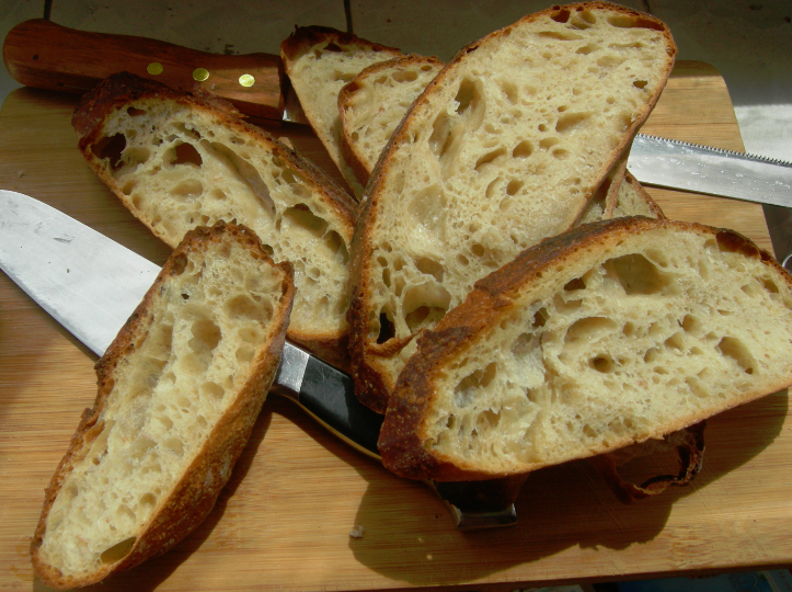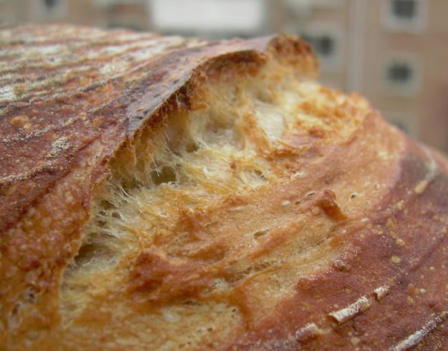 My scoring and shaping technique needs to be improved. It's crunchy with moist crumb. The taste is sweet and not too sour. I love this bread!