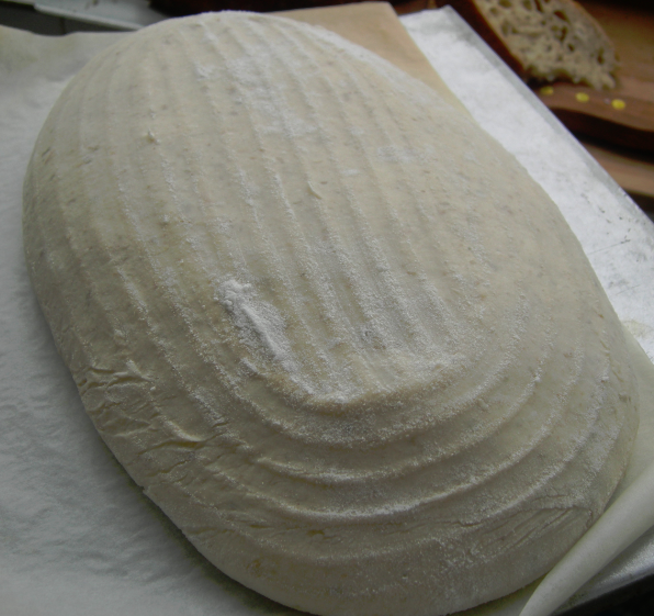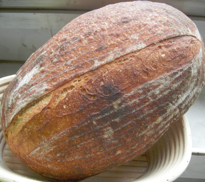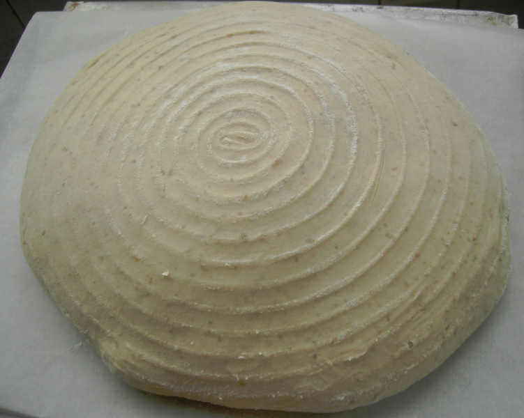 5.Preheat the oven and baking stone to 270C. Pop the dough in then turn the oven to 230C for 40minutes,with steam in the first 15minutes.