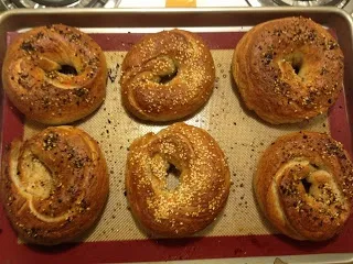 I tried making bagels, using Peter Reinhart's tutorial on Epicuious. They turned out alright. Next time I would work the seam a bit more. I was wondering if anyone has picked up any other tips to share.