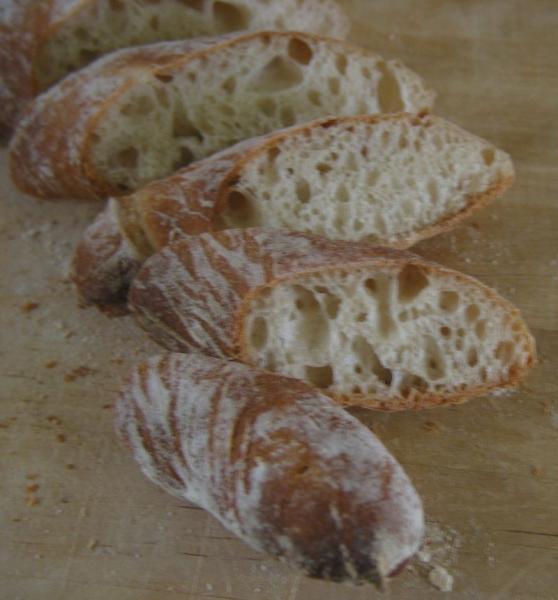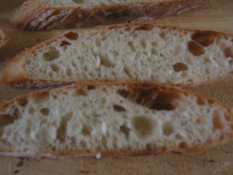 I used a hydration of 70%, whereas Reinhart recommends a value somewhere in the range 70-88%. I diverged slightly from his instructions in a couple of places.