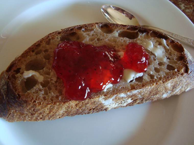 Strawberry Jam on Pain Au Levain w/ whole wheat - Jeffrey Hamelman's 'Bread'
