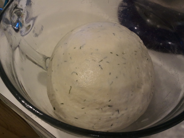 As usual we all approached this bake differently... Helen made a dill boule using her basic sourdough recipe and adding powdered milk, potato flakes, and fresh chopped dill. You can see the little speckles of dill in there.