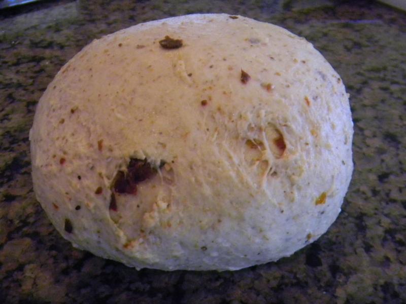 We did 10 minutes of slap and folds and 3 sets of S&F’s 15 minutes apart. The home made sun dried tomato, garlic and rosemary were incorporated during the first S&F. The dough came together beautifully and was ready to go after 3 hours of proofing on the counter. It smelled terrific.