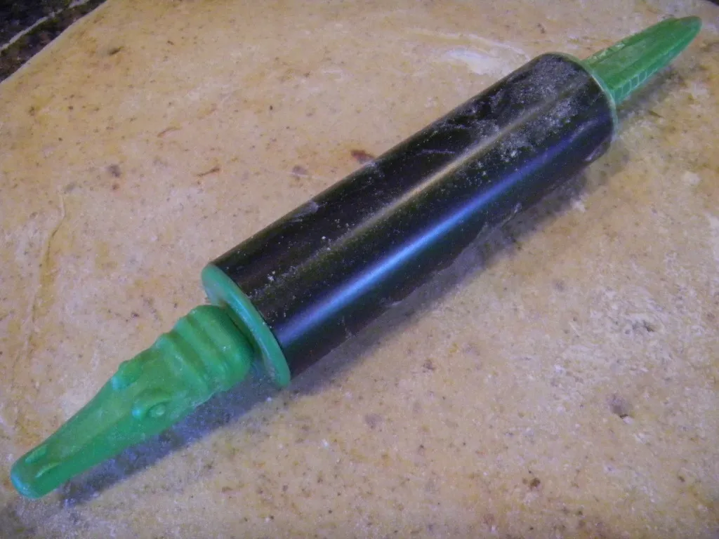 to roll out the inside of pizza thin as could be. When I brought this one home I told Lucy, I have a new apprentice who might eat you! She thought it was a toy and took off with it:-) She is too fast to catch as my age but she eventually brought it back.