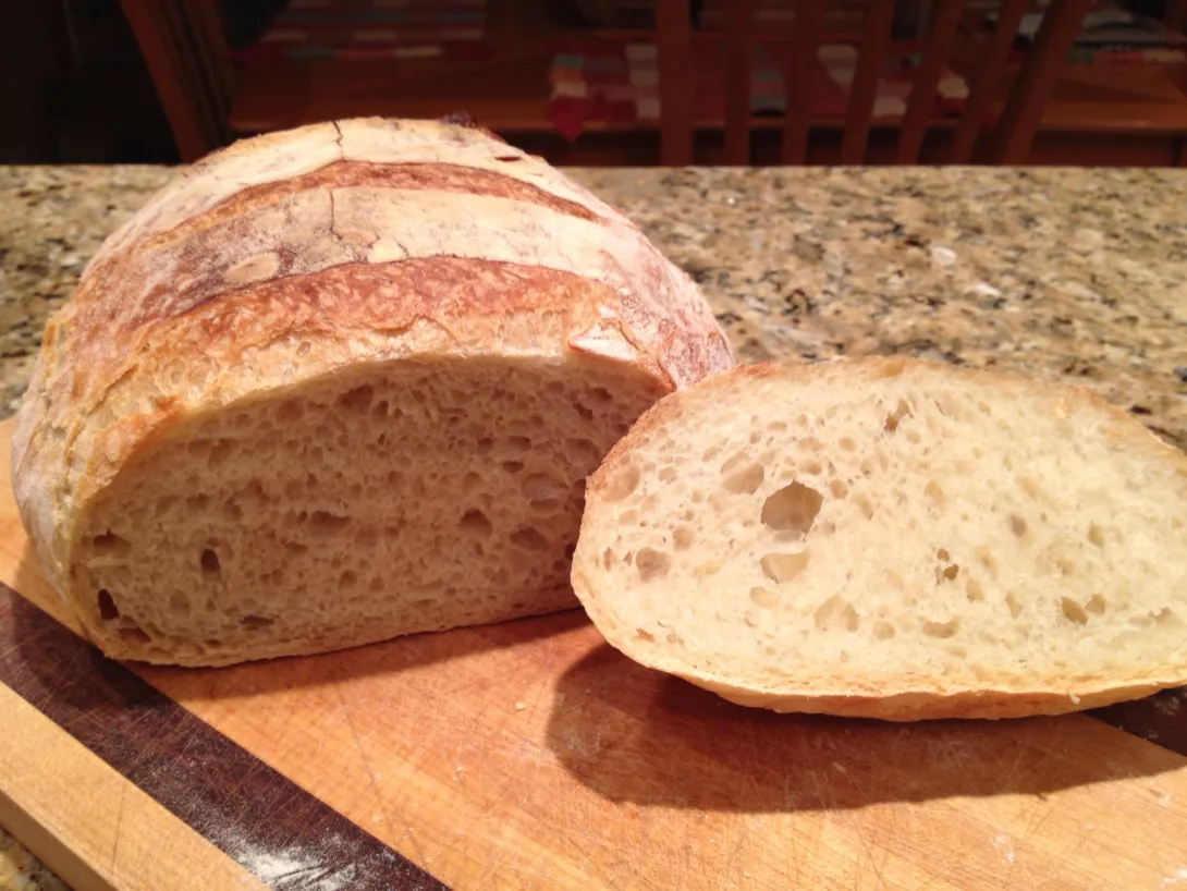 Photo is of my first shot at an artisan loaf, using a Dutch oven and Jim Lahey's No-Knead recipe. I have a test batch going on the counter now, with garlic and rosemary added...