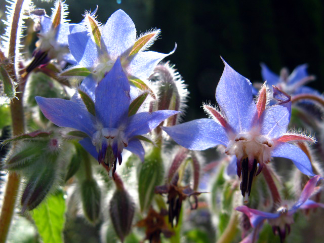 No blue pea flowers here, but the borage is flowering (this one is edible too; looks pretty in this morning's sun?):