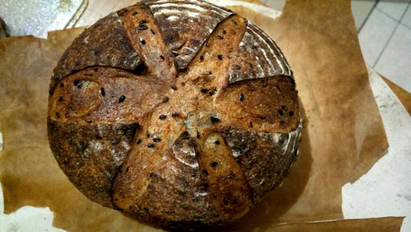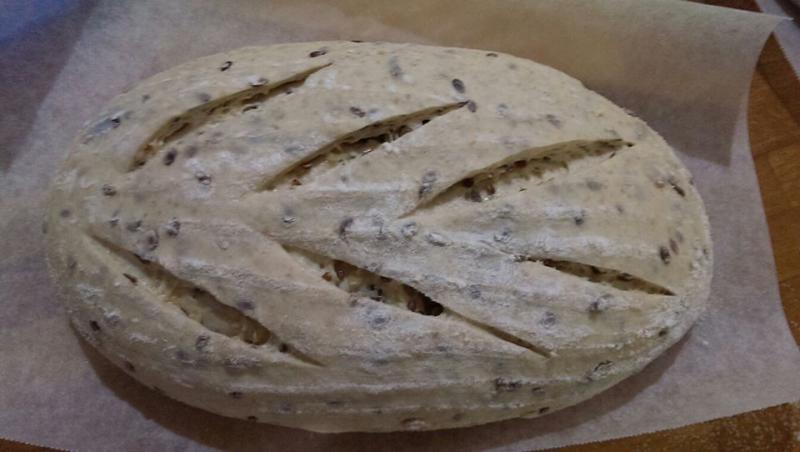 this is a Toasted flax seeds Quinoa Spelt sourdough bread..