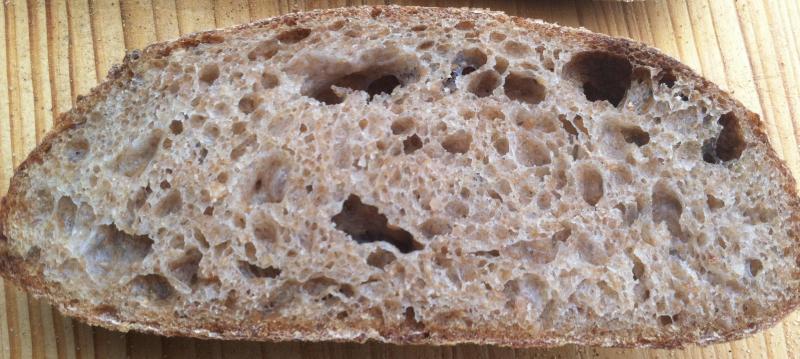 SF. My work does have a mill and I generally mill my own wheat and rye. this flour was local and milled by another bakery. It's milled a bit finer than I grind but beautiful stuff. I forget the variety. I just missed out on the Red Fife. Pretty sure its about 5 or 6 varieties of heirloom wheat (red winter and white what) being grown. Also some barley specifically for beer but I intend to check that out too. Anyway. Yes lately I formulate my hydration by targetting each flour individually and then taking the sum. In this case I believe I set the wheat at 100% and the white at 70 which resulted in 88% hydration plus the soaker (which soaked up all its water and was fairly dry but softened).