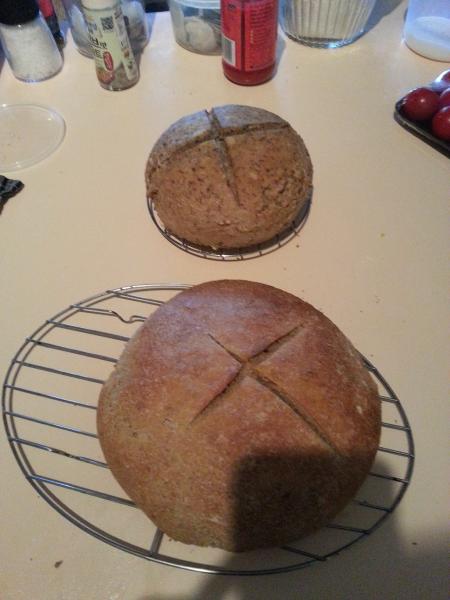the floured one is wholemeal (i did the thing with the bowl and teatowel you described) the other is 50/50 white and rye, can't wait to have some for breakfast tomorrow!