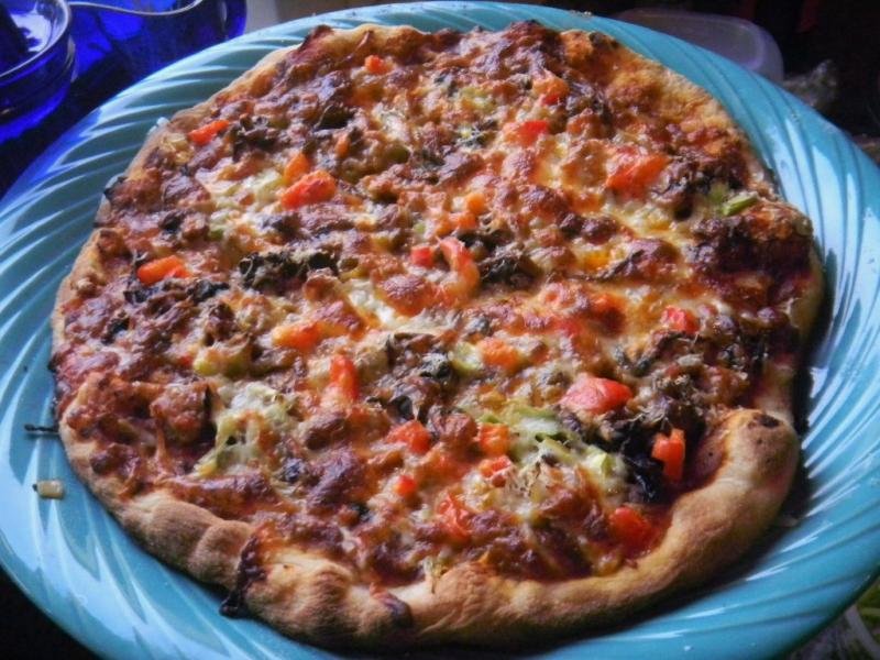 makes everything better than Big Old Betsy does. I was actually planning on baking this pizza in it but I made too much dough for 2 small pizzas so moved the bake to the grill. Now we have 3 ways, you have 4 with WFO and maybe 5 if you can figure out how to make it with your rotisserie, depending on what\ ever the situation is...