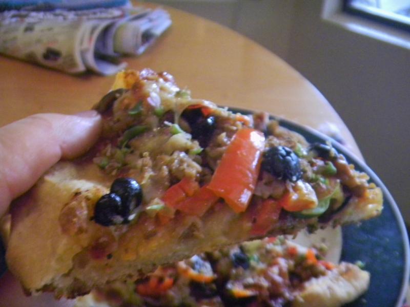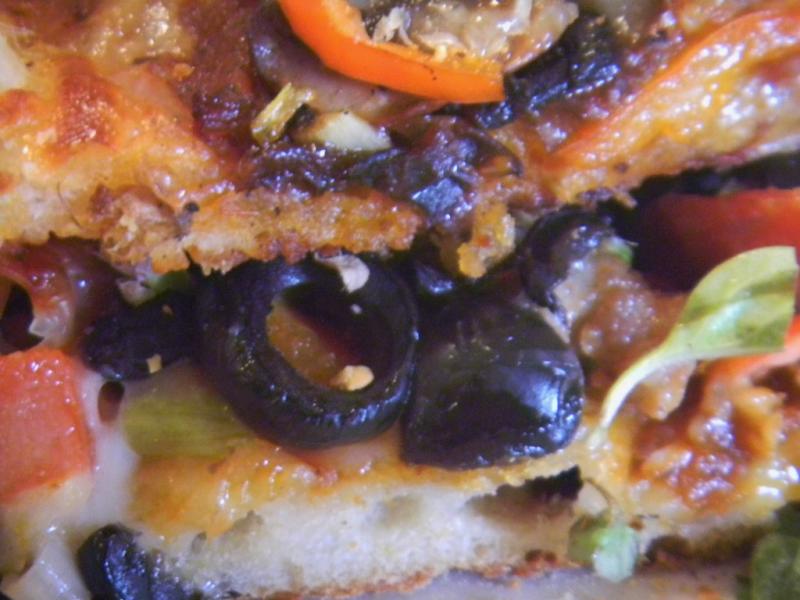 This pizza was done entirely in the TO. I've been making minor changes..like adding the cheese last few minutes. I try to keep my cheese from any browning as much as I can. Wow, did it have a great 'crunch' factor. That pizza pan does work nicely..right up there with a stone. I do have a pizza stone left from my old counter top oven that fits perfect..but the non-stick perforated and solid pizza pans that are made for this TO work even better. Also, you can purchase a perforated aluminum pizza pan that works too.