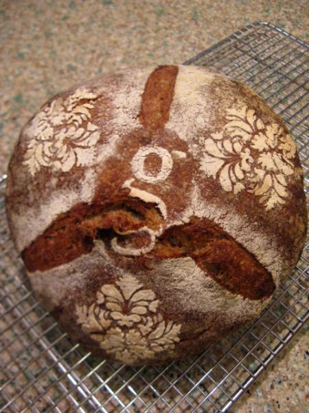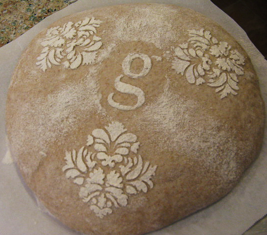 While stencilling, I was thinking (rather impatiently), "I really need to get this into the oven", when I could have relaxed and taken my time, allowing the bread some extra proofing :^)