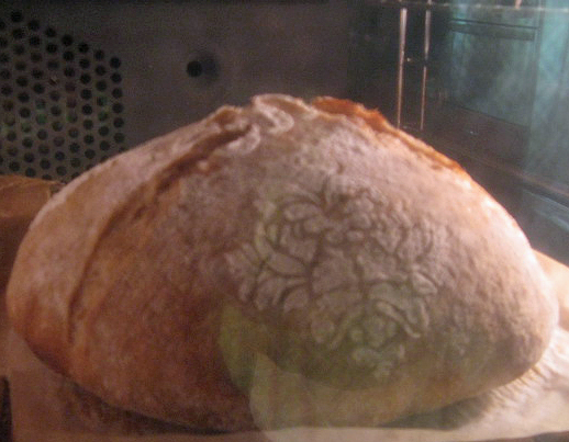 The first bake (two boules) was under-proofed - to my dismay!, attempting a pretty stencilled pattern, inspired by the Gilchester's website design...