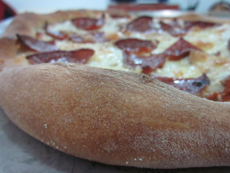 6.Shape one ball at a time to a pizza, to it up and transfer to the baking stone using a peel dusted with flour and cornmeal.