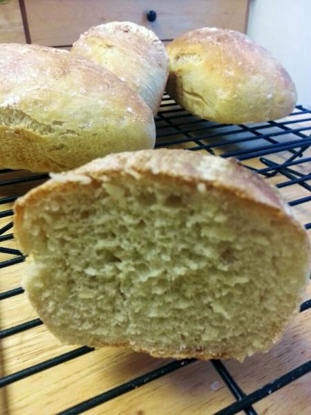 The dough was very wet and I put the loaves in bread pans instead of just letting them spread out.