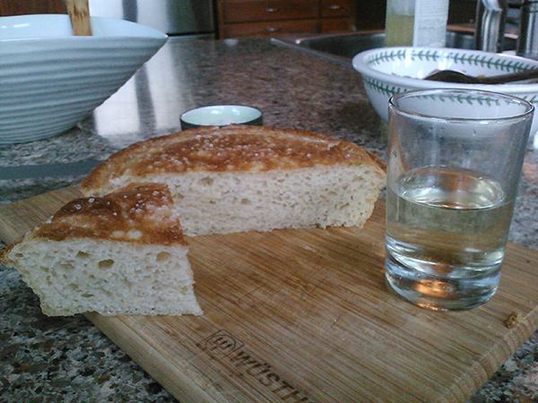 Pretty straight-up focaccia, made with a biga that proofed for about two hours before dough-making. Baked it in my stoneware chestnut roaster and got exactly ZERO oven spring. Topping was just plain sea salt.